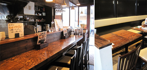 ラーメン店の居抜きの内装をほぼそのまま使ったとは思えないほど、女性も入りやすい清潔感ある店舗。