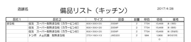 その際は下部の表をご利用ください。(備品リスト2シート目)