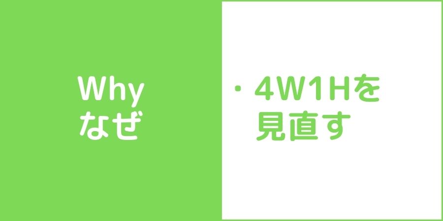 ここまで4W1Hですね。「Who」「What」「When」「Where」「How」についてお話しました。