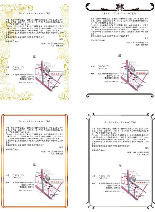 飲食店のレセプション・プレオープン【招待状ひな型】