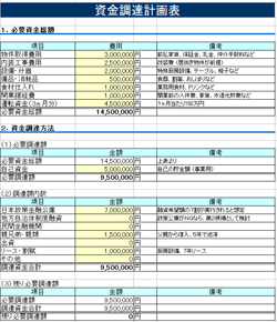 開業時に必要な資金を「どこからどのように調達するか?」に関して、計画を立てる為のツールです。